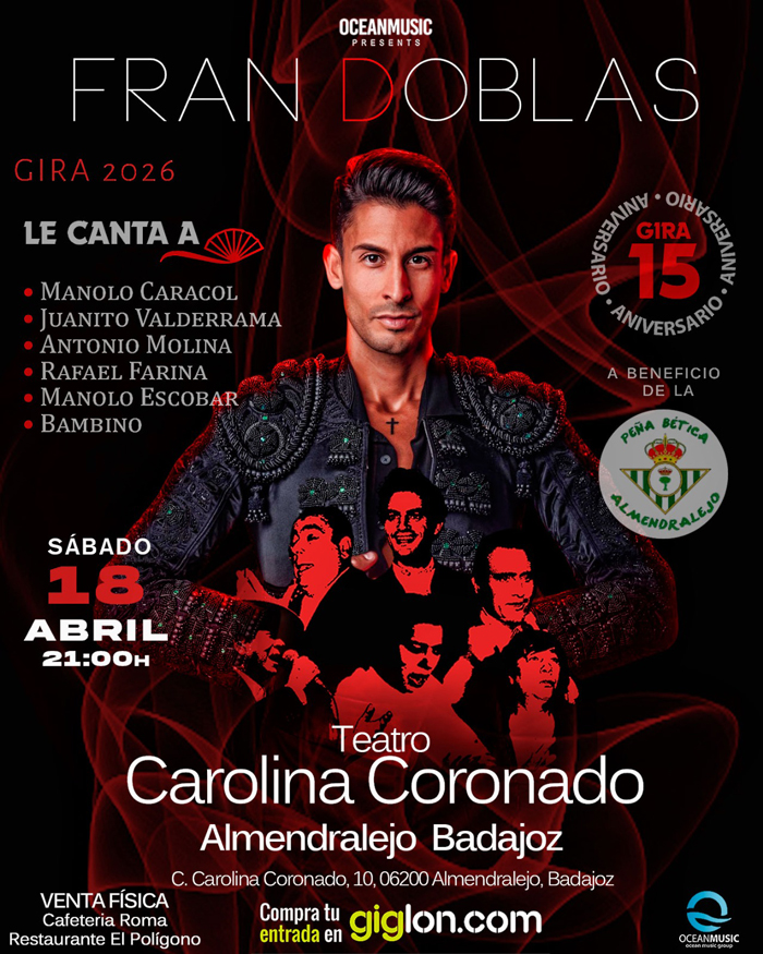 Sábado, 18 de abril de 2026, a las 21:00 h. Teatro Carolina Coronado de Almendralejo (Badajoz).